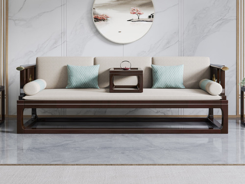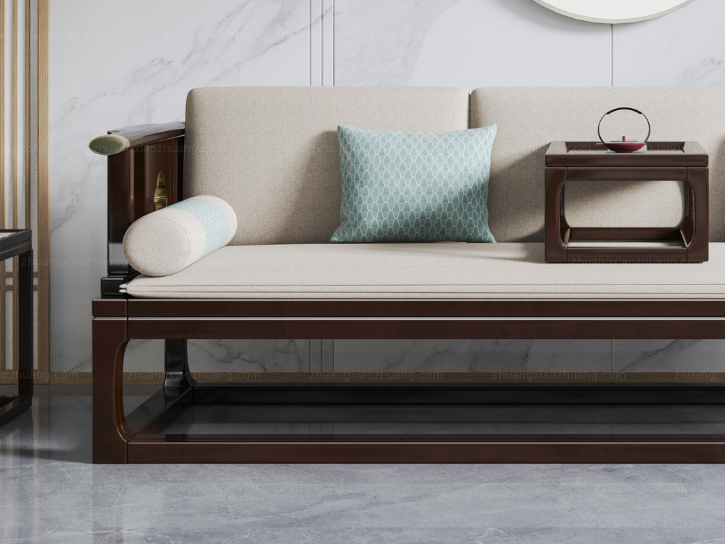 【华盛轩】新中式 橡胶木+棉麻布 罗汉床