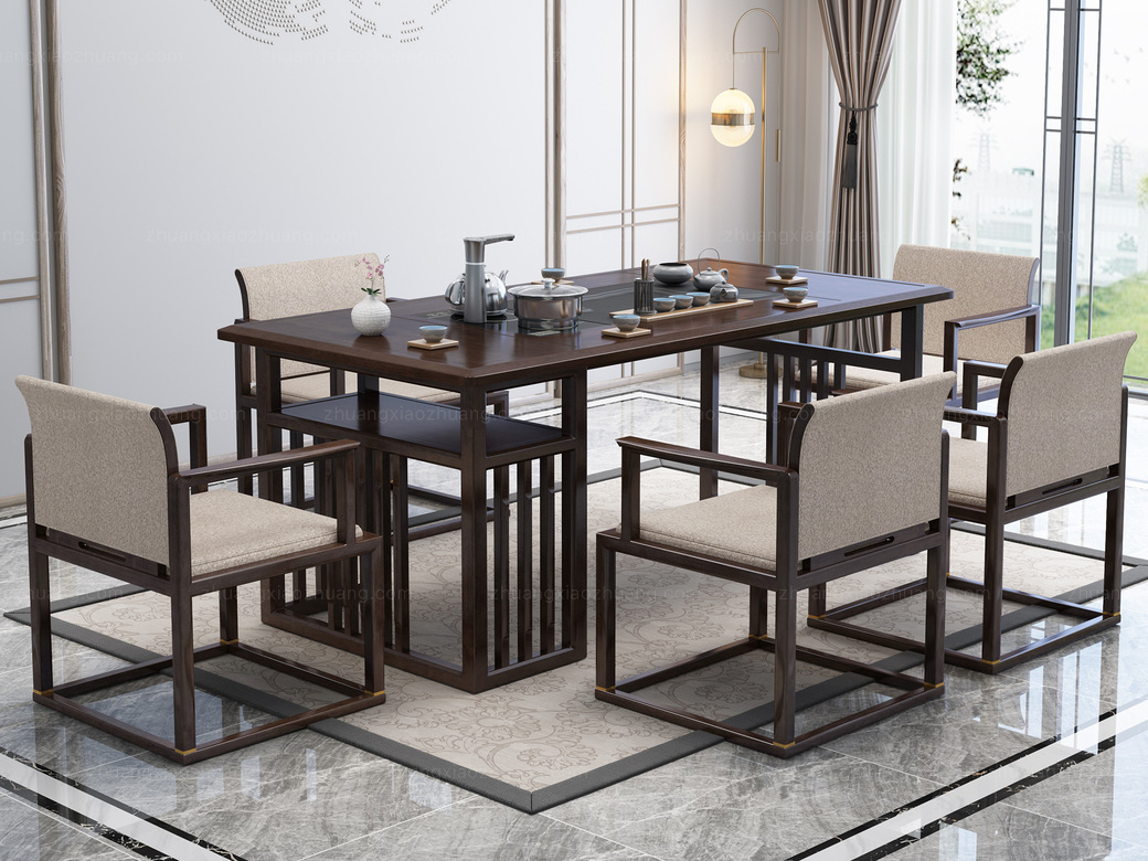 【华盛轩】新中式 橡胶木+大理石+电磁炉 1.8米茶台