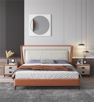 【品上佳】 极简风格 面料:科技布 靠包填充:海绵 框架:松木 床边床尾:整块松木 配静音床板 1.5米床