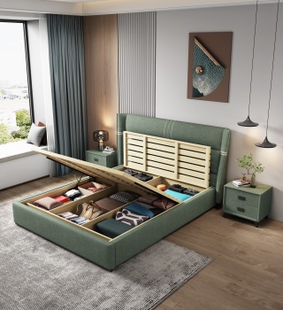 • 面料:科技布 靠包填充:海绵 框架:松木 床边床尾:整块松木 配静音床板