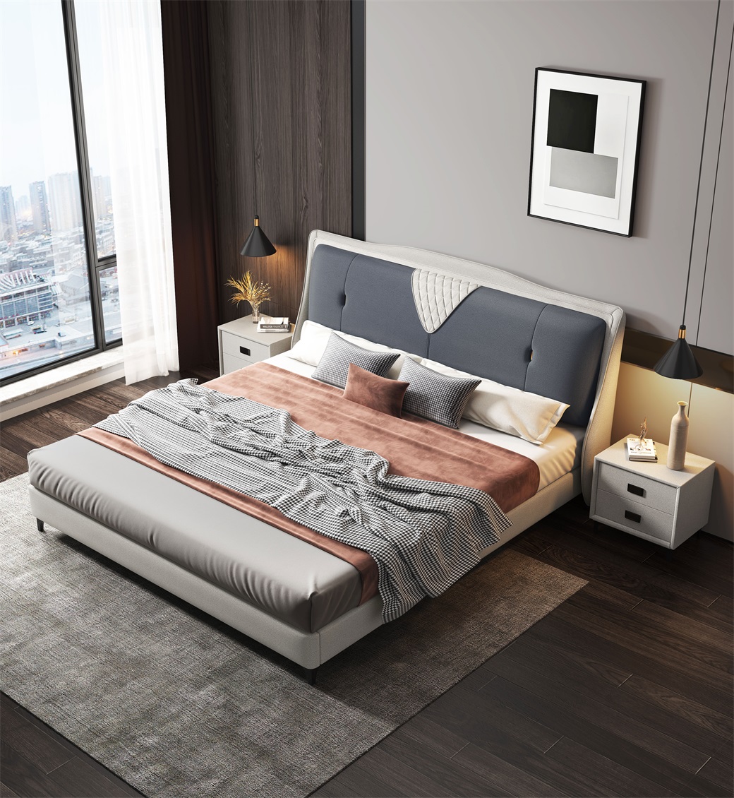 • 面料:科技布 靠包填充:海绵 框架:松木 床边床尾:整块松木 配静音床板