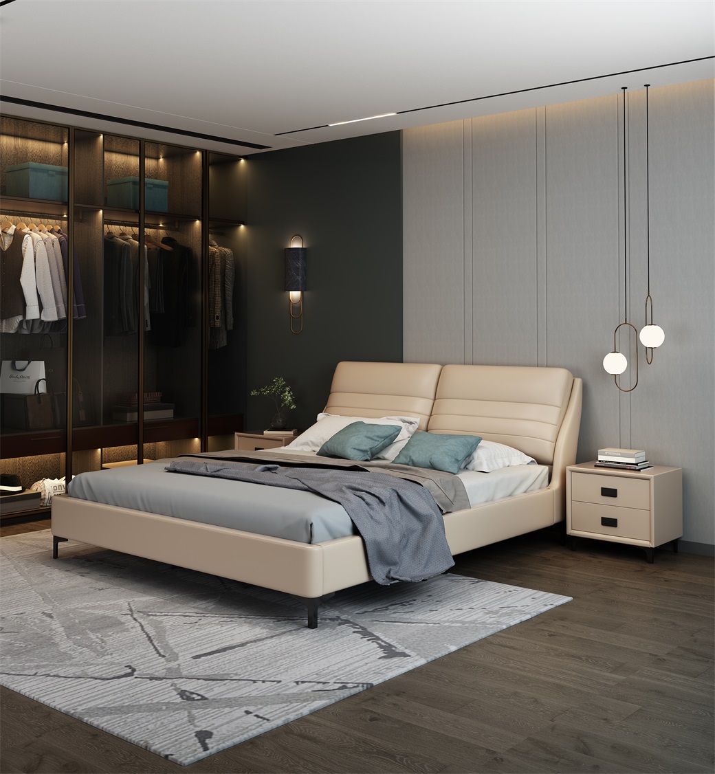 【品上佳】 极简风格 面料:牛皮绒(金刚皮) 靠包填充:海绵 框架:松木 配1.8公分厚床板 1.8米床