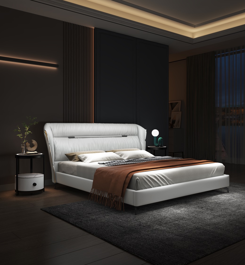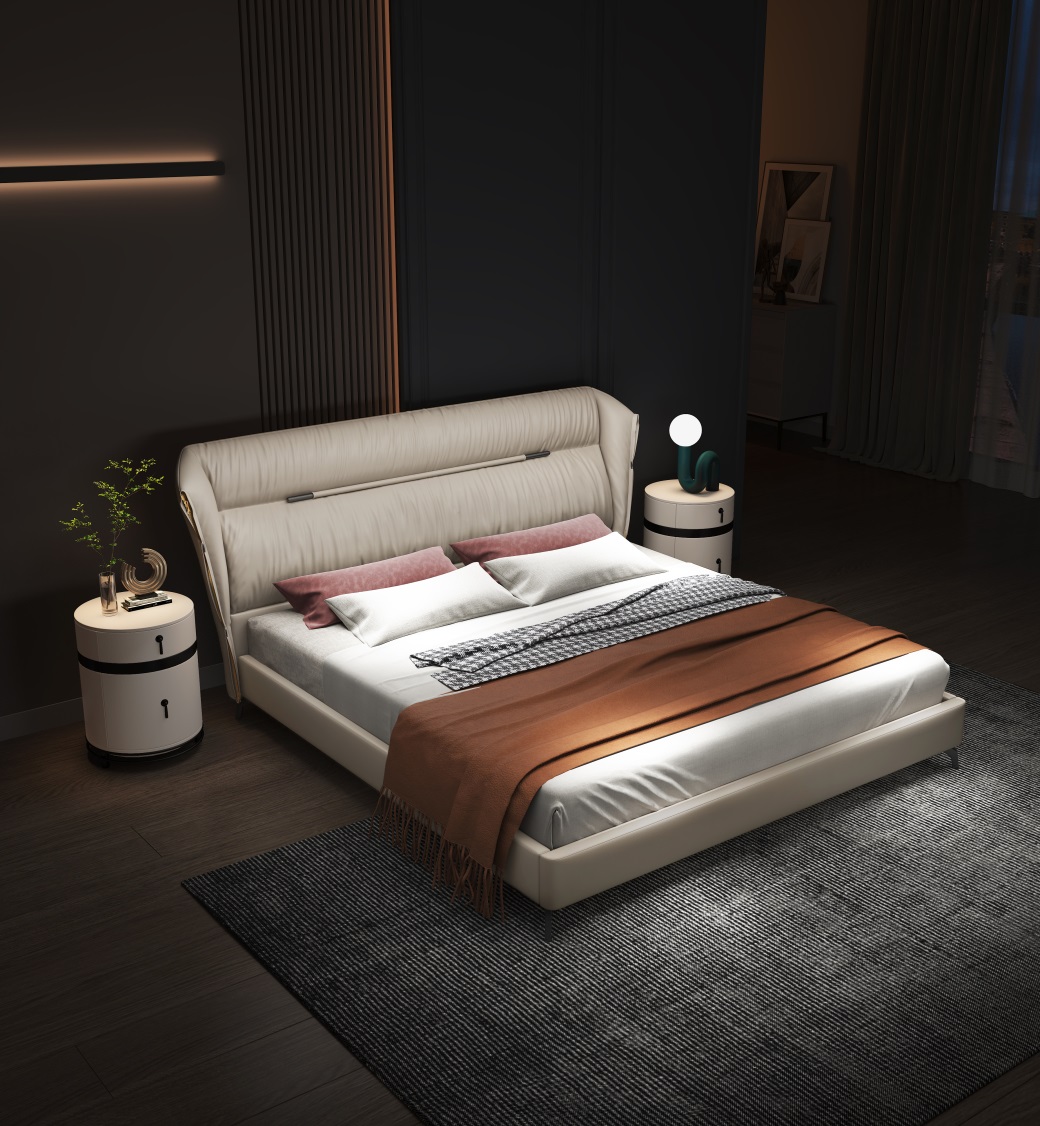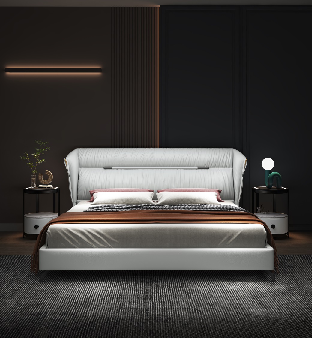 • 面料:金刚皮;靠包填充:海绵+羽绒;框架:全松木;床边床尾:全松木4.5cm厚;床板:静音床板厚2cm;皮质特点:耐磨性强