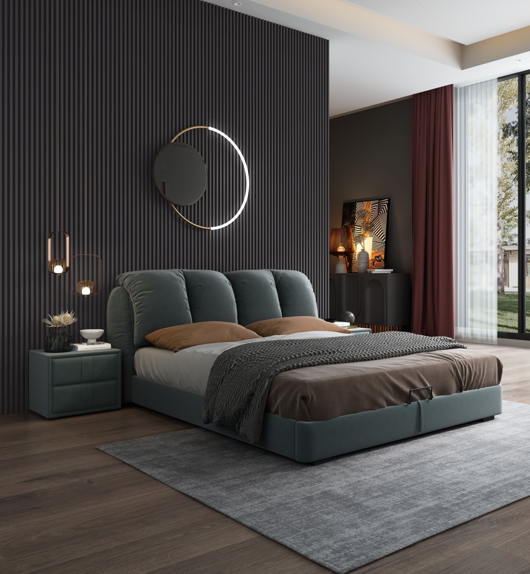 • 面料:科技绒;靠包填充:公仔棉;框架:全松木;床边床尾:整块松木;防水等级:中级;配静音床板