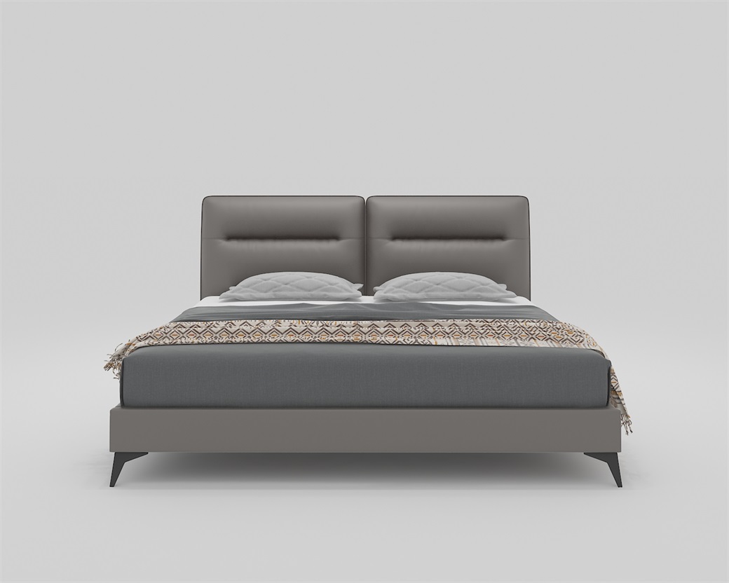 • 床头接触面头层牛皮+仿皮;床身为扪皮包边;加强型实木排骨架