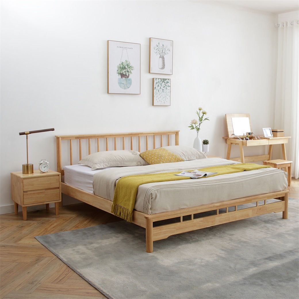 【原木森林】北欧风格 优质进口实木框架 原木色 1.5米实木床