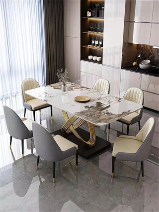 【里奥】极简 桌面:岩板+底板 脚架:不锈钢+柜体 1.4米餐桌