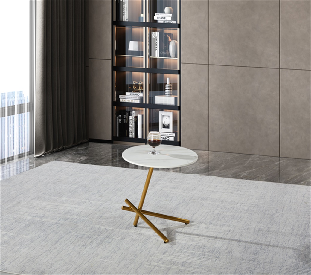 【里奥】极简 黑砂碳素钢+岩板 边几
