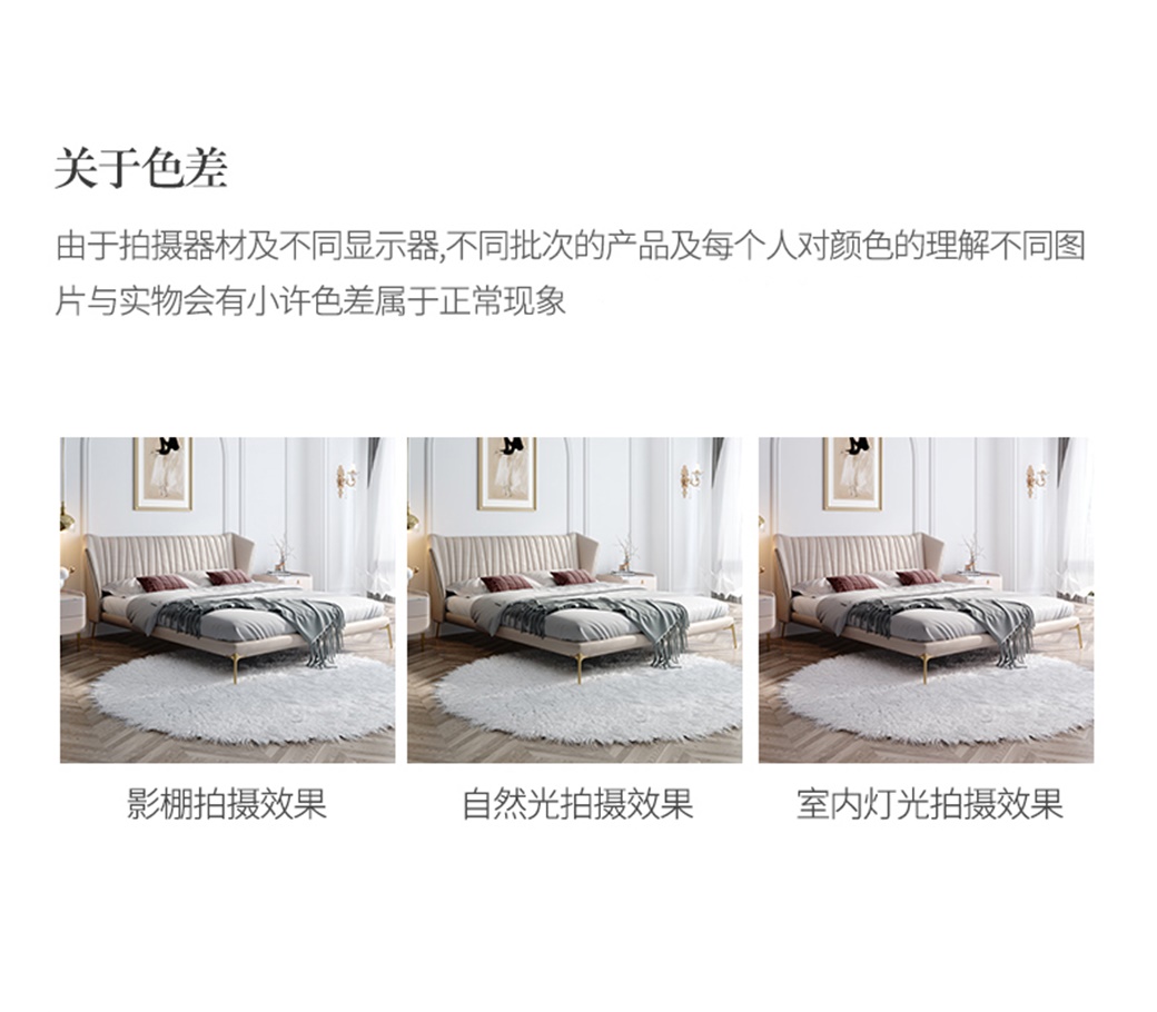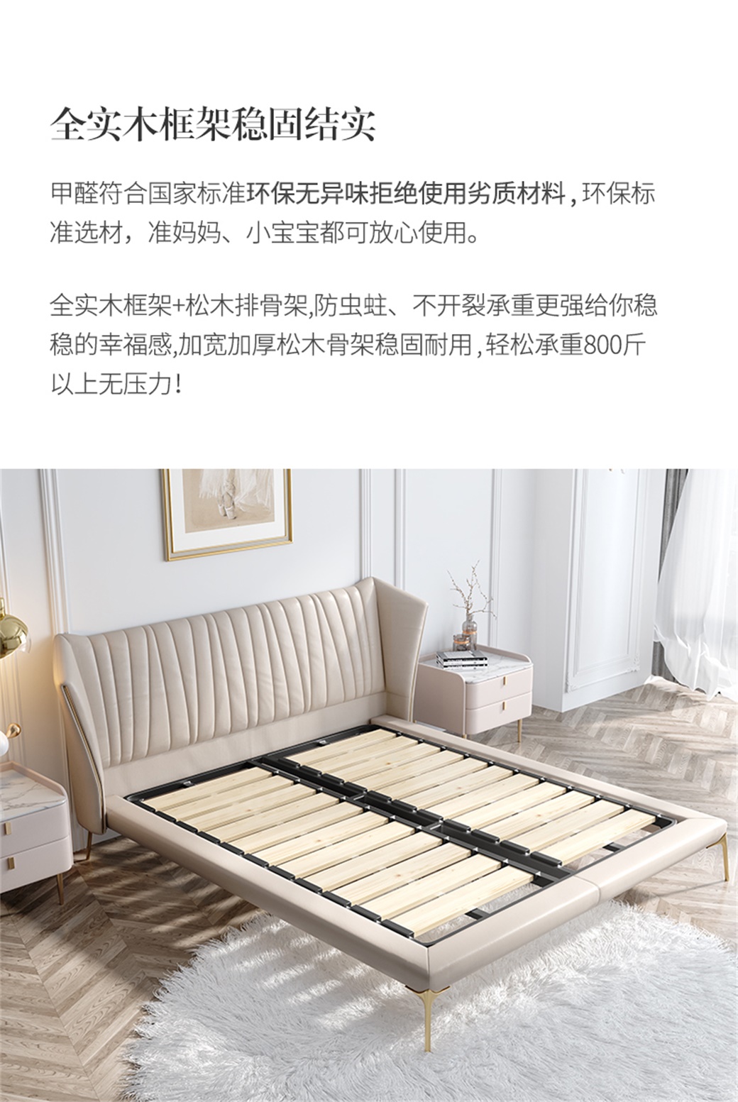 【简奢家】轻奢 接触面真皮+高密度海棉+全实木内架+不锈钢五金脚 1.5米床