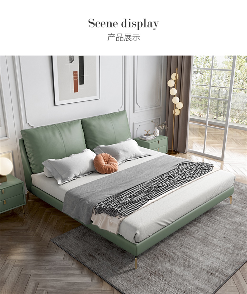 【简奢家】轻奢 接触面真皮+高密度海棉+白鹅羽绒+全实木内架+不锈钢五金脚 1.8米床