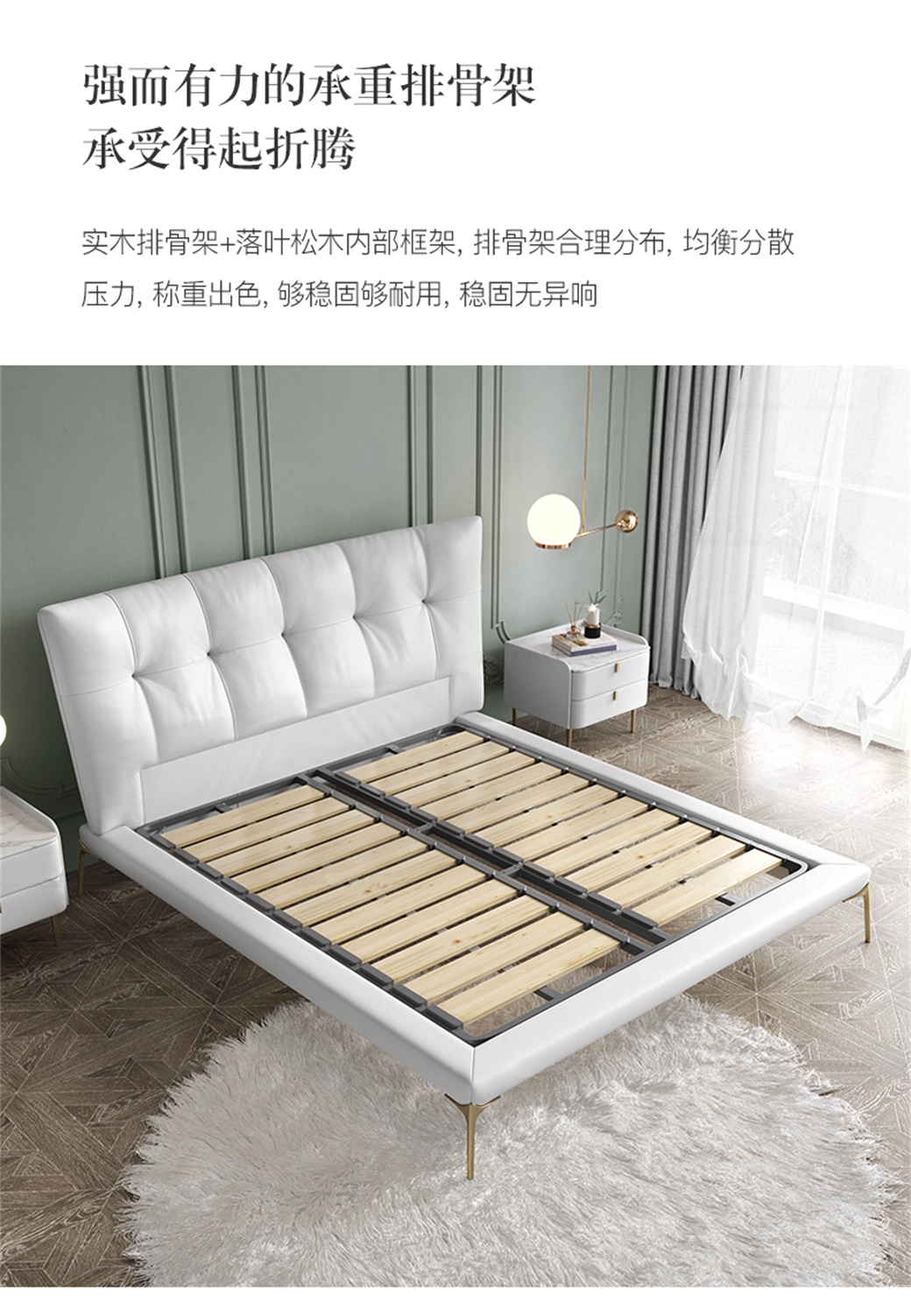 【简奢家】轻奢 接触面真皮+高密度海棉+白鹅羽绒+全实木内架+不锈钢五金脚 1.5米床