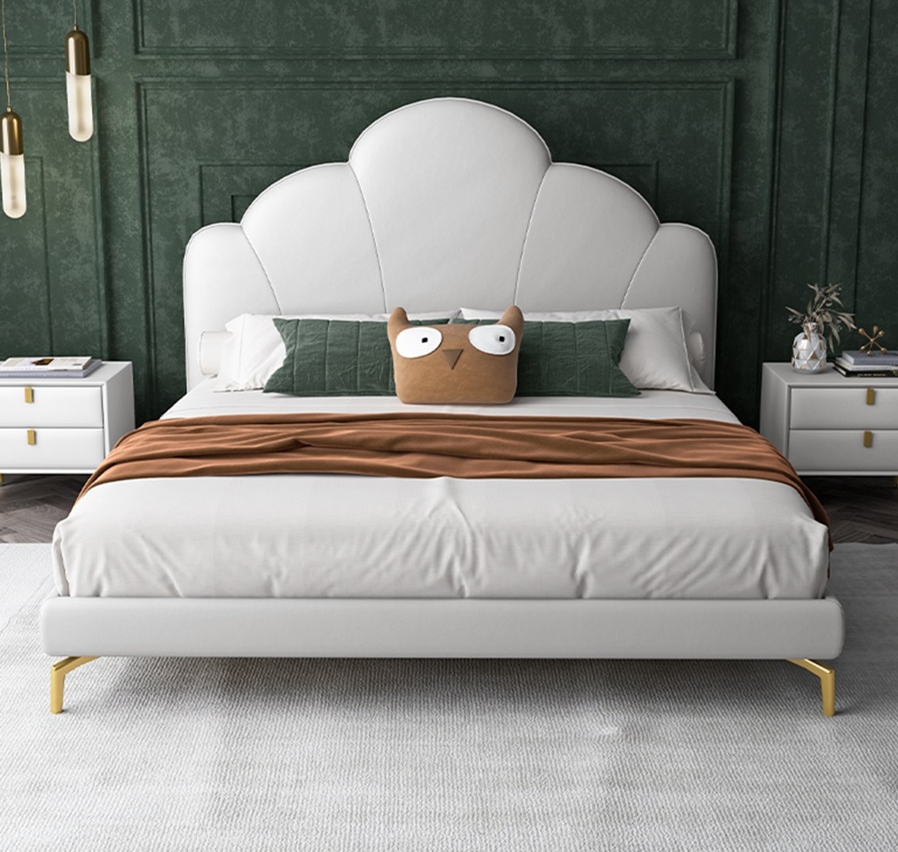 【简奢家】轻奢 接触面真皮+高密度海棉+白鹅羽绒+全实木内架+不锈钢五金脚 1.8米床