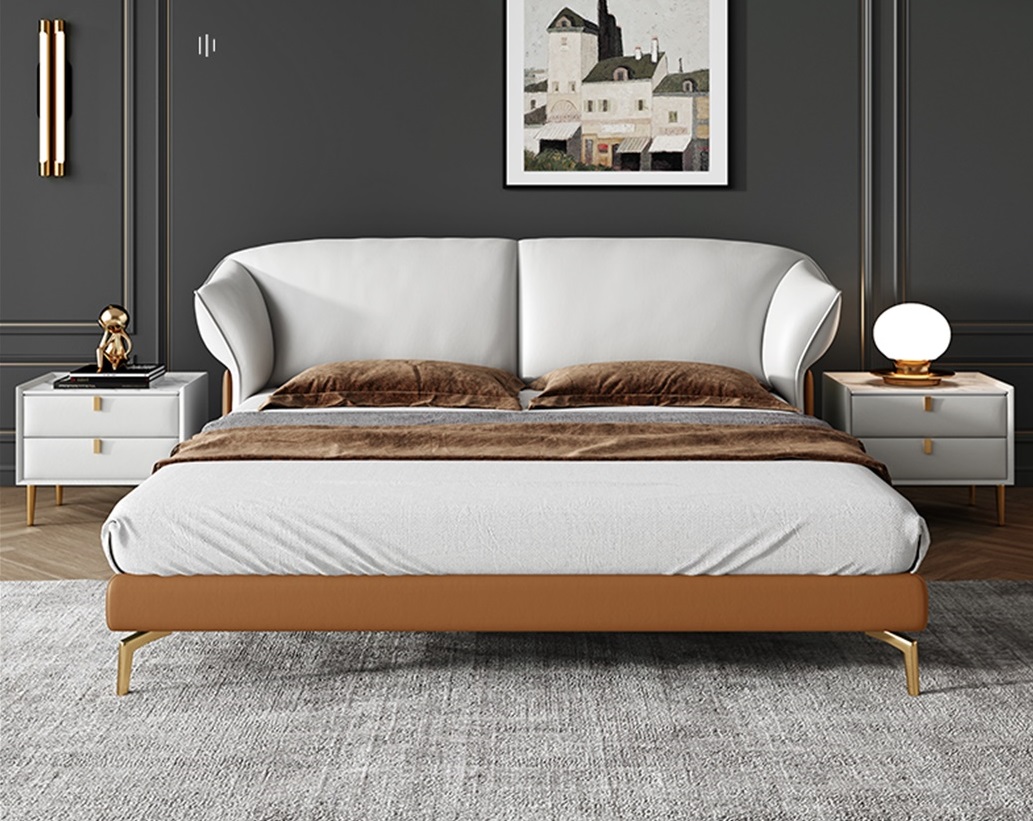 【简奢家】轻奢 接触面真皮+高密度海棉+白鹅羽绒+全实木内架+不锈钢五金脚 1.8米床