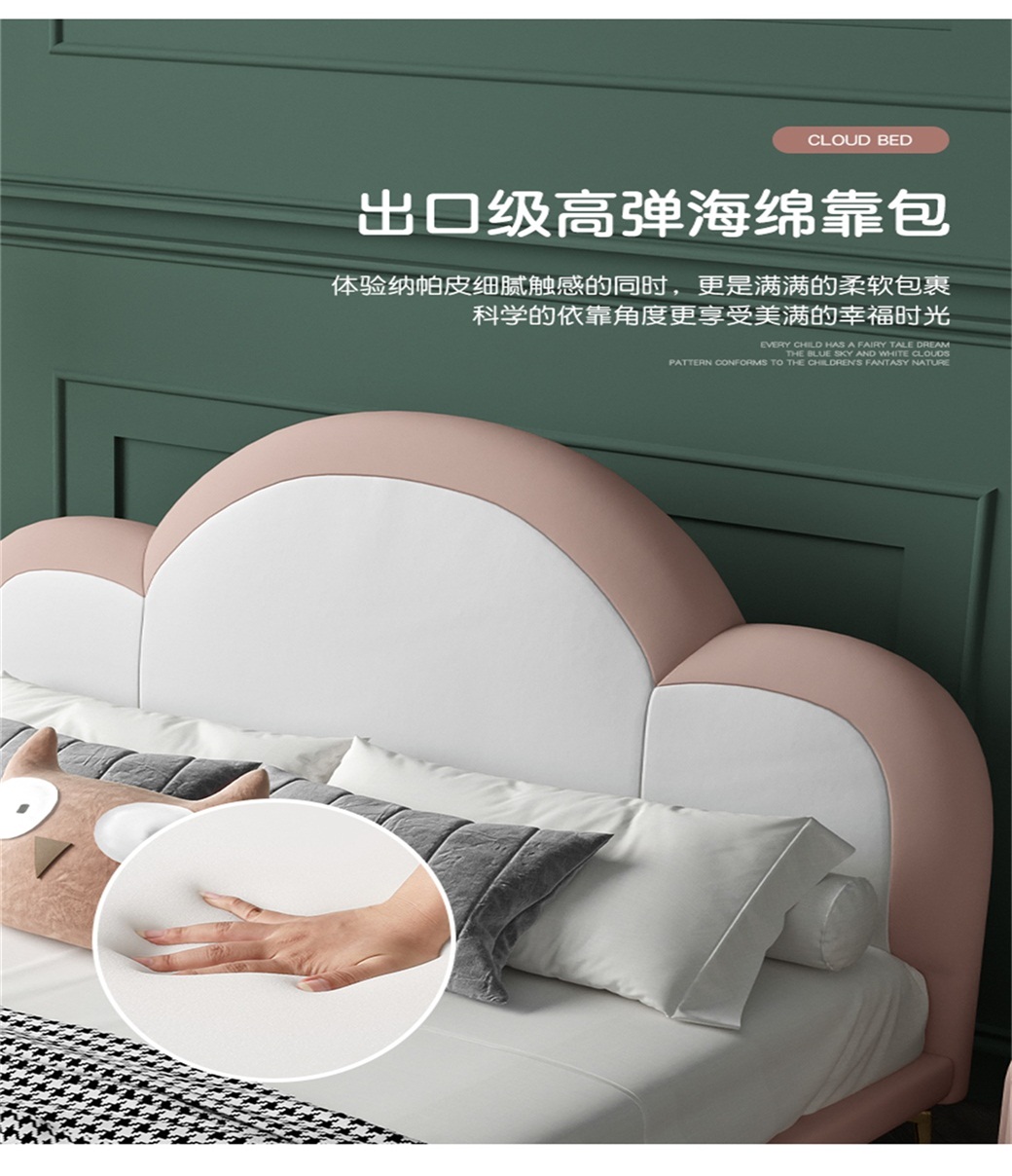 【简奢家】轻奢 接触面真皮+高密度海棉+全实木内架+不锈钢五金脚 1.35米床