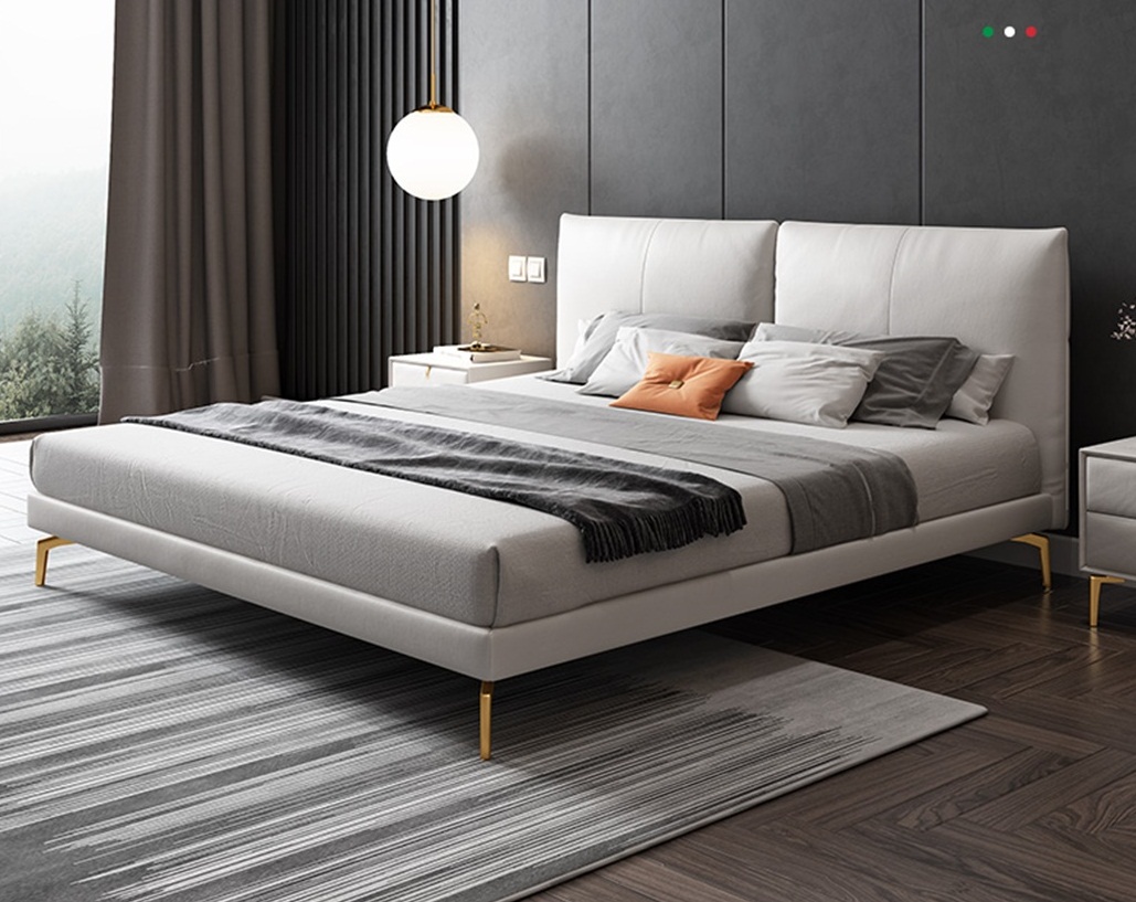 【简奢家】轻奢 接触面真皮+高密度海棉+全实木内架+不锈钢五金脚 1.5米床