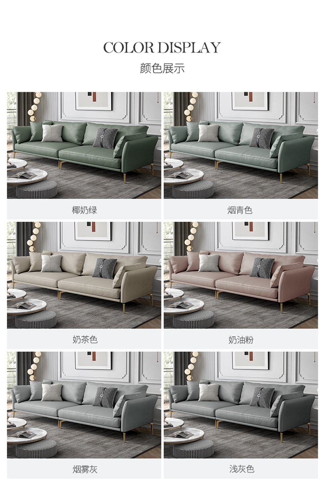 材质:全实木框架松木+鹅绒靠包+羽绒公仔包+不锈钢渡金脚+高密海棉整块坐垫
