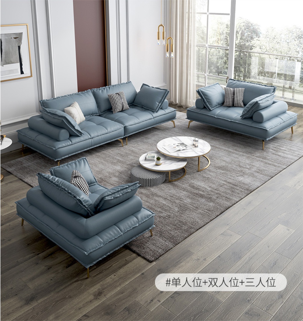 【简奢家】轻奢 实木内架+高密度海棉+鹅绒靠包++不锈钢五金脚 四人位