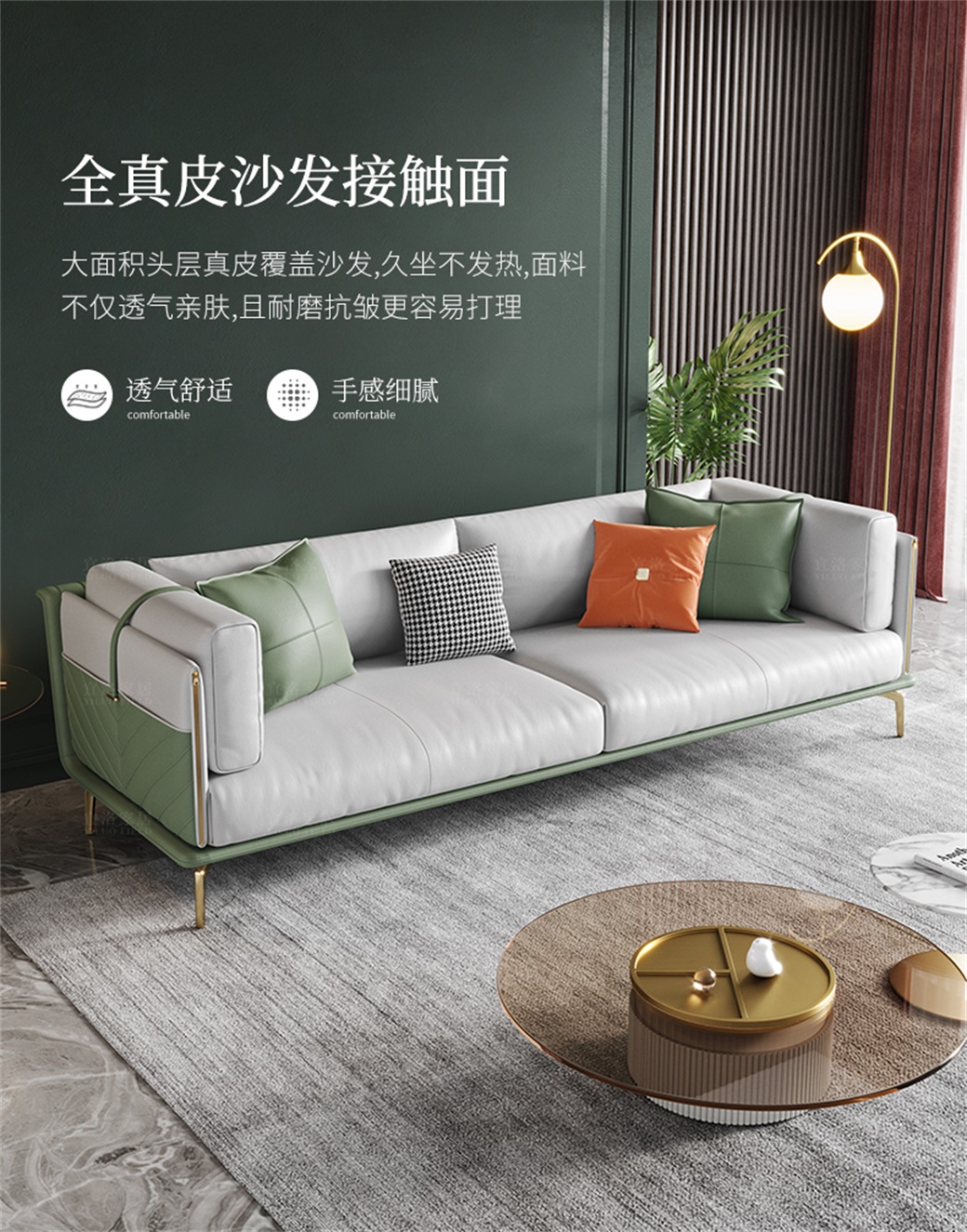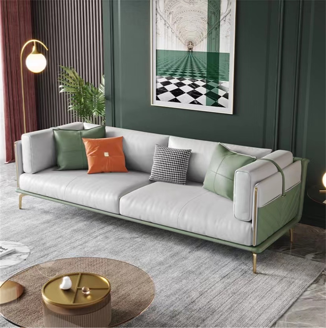 【简奢家】轻奢 全实木框架松木+羽绒公仔包+不锈钢渡金脚+高密海棉整块坐垫 三人位