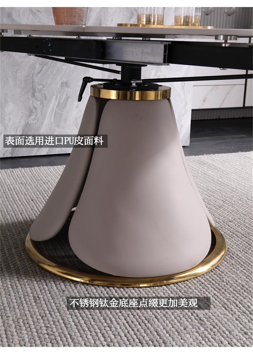 【简奢家】轻奢 碳素钢底架+12mm岩板+PU皮 旋转功能餐台