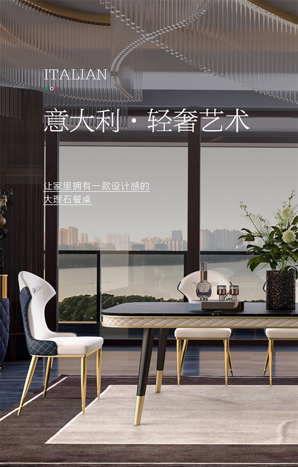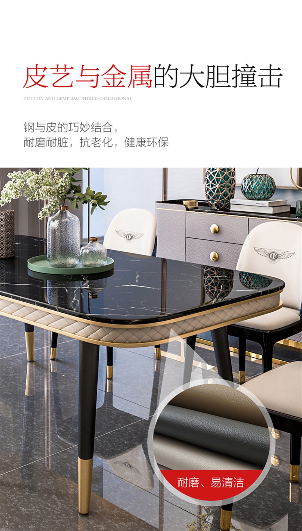 【简奢家】轻奢 不锈钢钛金封釉+不锈刚中间绣花包皮+黑色碳素钢+大理石/岩板 长餐桌