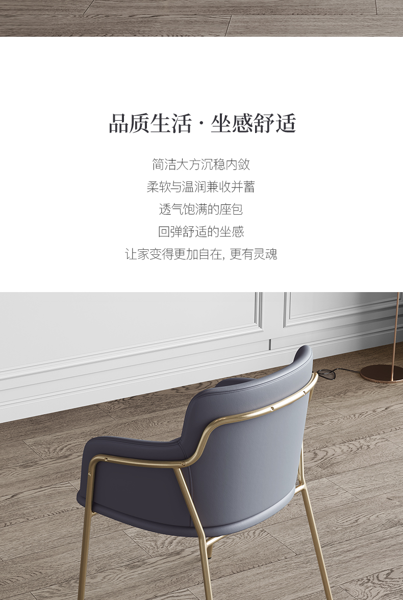 【简奢家】轻奢 环保皮+高密度海绵+不锈钢五金镀金 餐椅/书椅