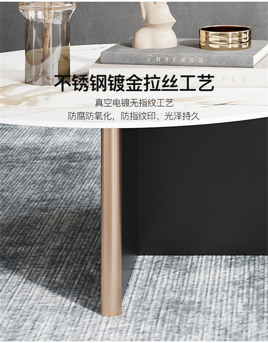 【简奢家】轻奢 岩板+不锈钢黑钛+不锈钢拉丝 茶几组合