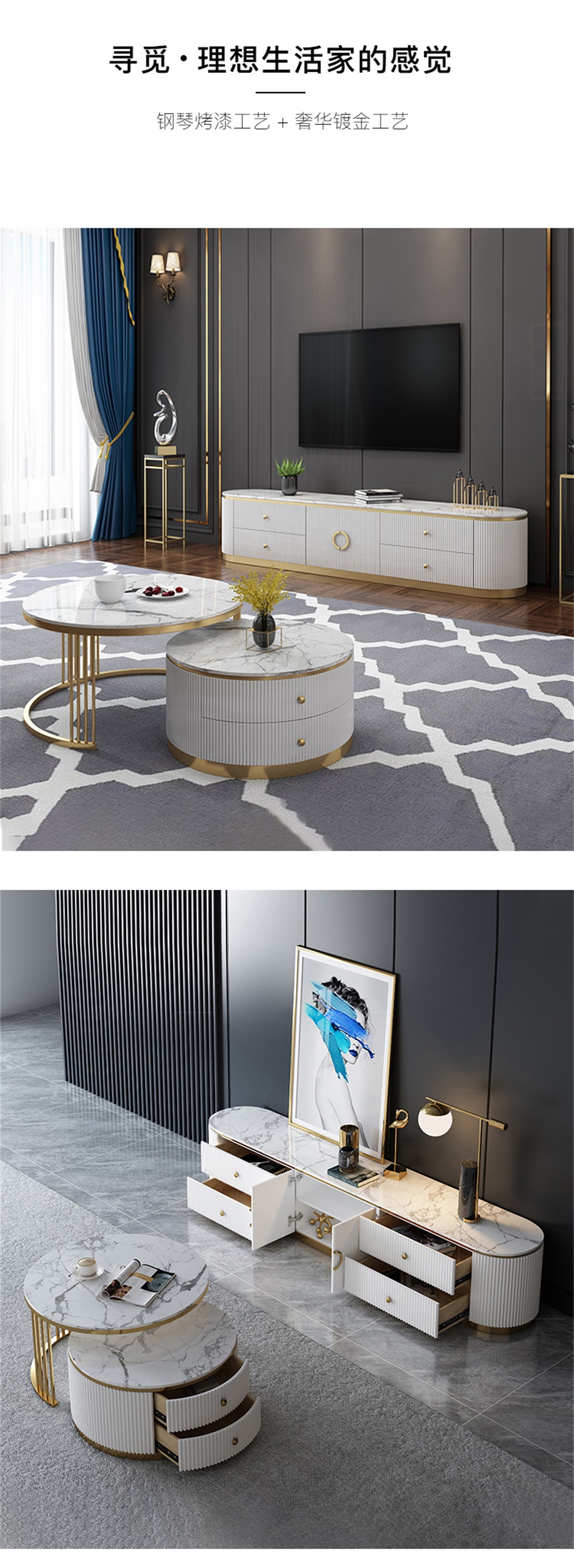 【简奢家】轻奢 大理石+E1中纤板+烤漆+不锈钢封釉 茶几