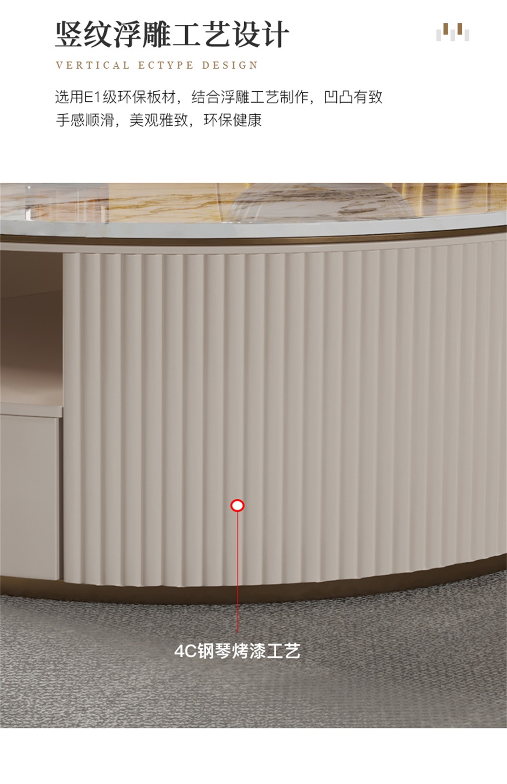 亮光岩板+4C钢琴烤漆+E1板材+实木抽屉+不锈钢镀金