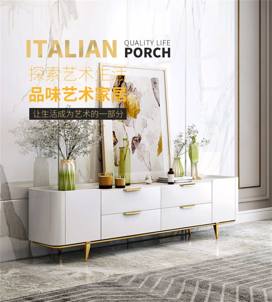 【简奢家】轻奢 钢琴烤漆面+E1级中纤板+实木抽屉+电镀封油 电视柜(黑色/白色)