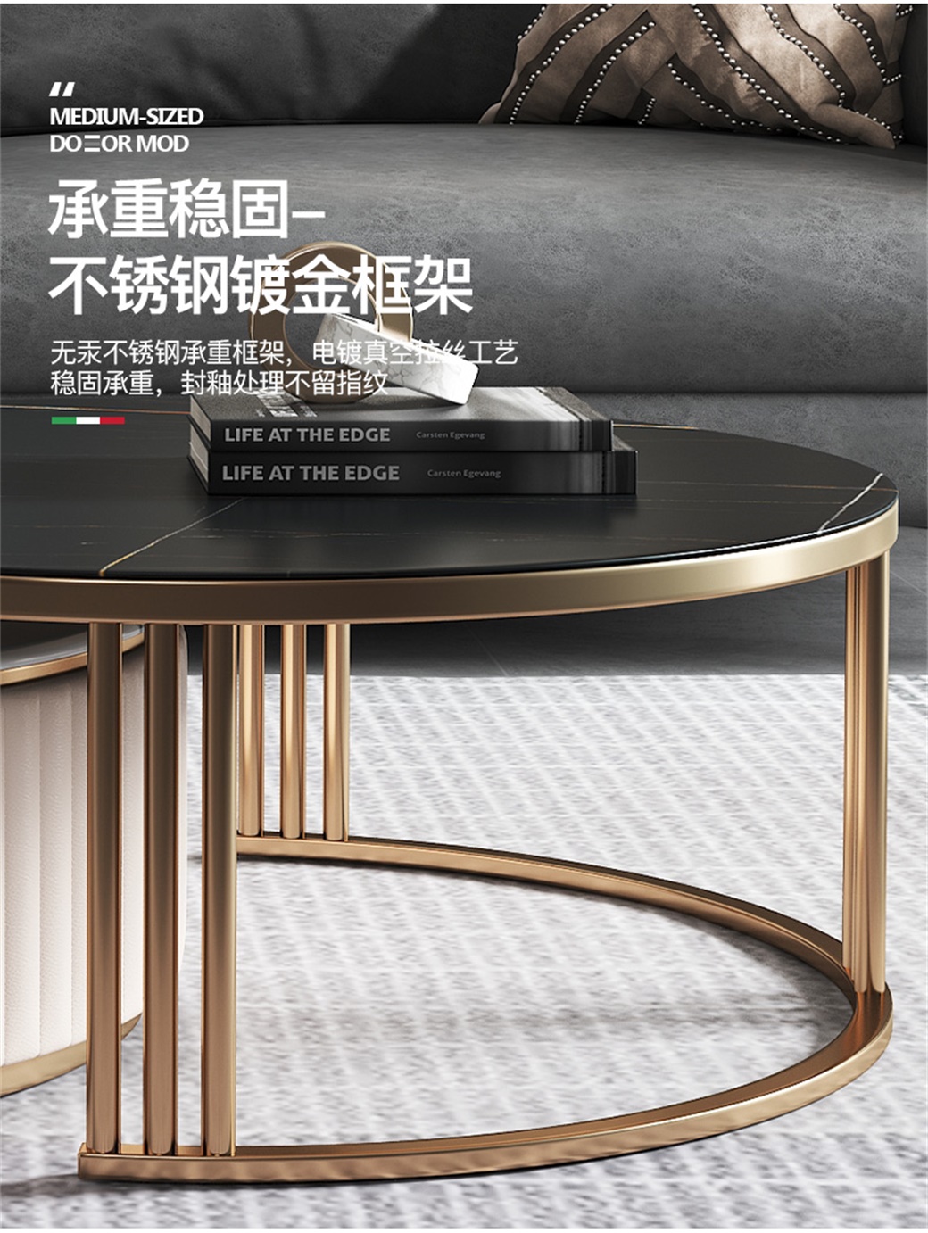 【简奢家】轻奢 岩板+E1中纤板材+实木抽屉+不锈钢脚套 电视柜