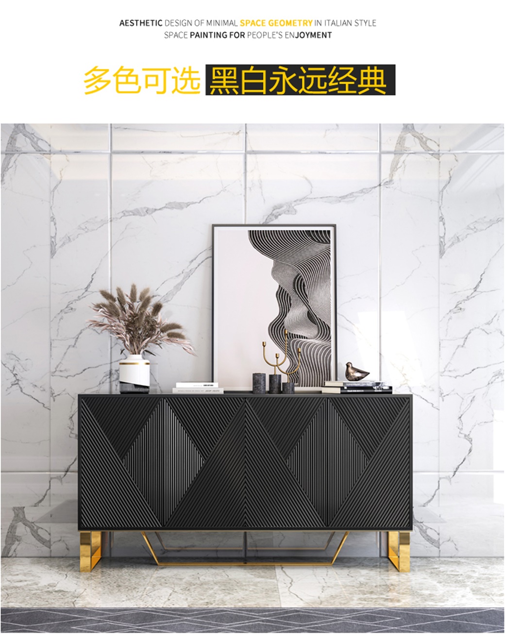 【简奢家】轻奢 电镀封油无指纹+黑白亮板烤漆+玻璃面+哑光烤漆+实木抽屉 玄关(黑/白色)