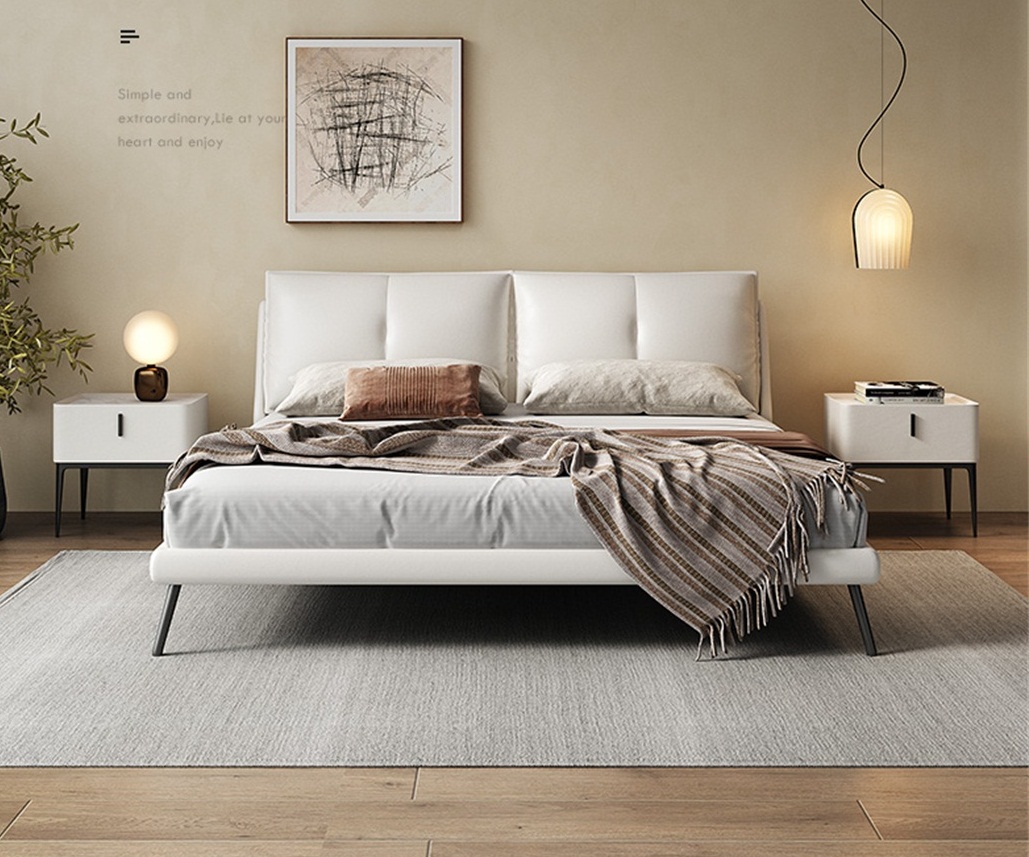 【简奢家】极简 纳帕头层真皮+高密度海棉+白鹅羽绒+俄罗斯进口落叶松内架+碳素钢脚+10分松木钢木排骨架 1.5米床
