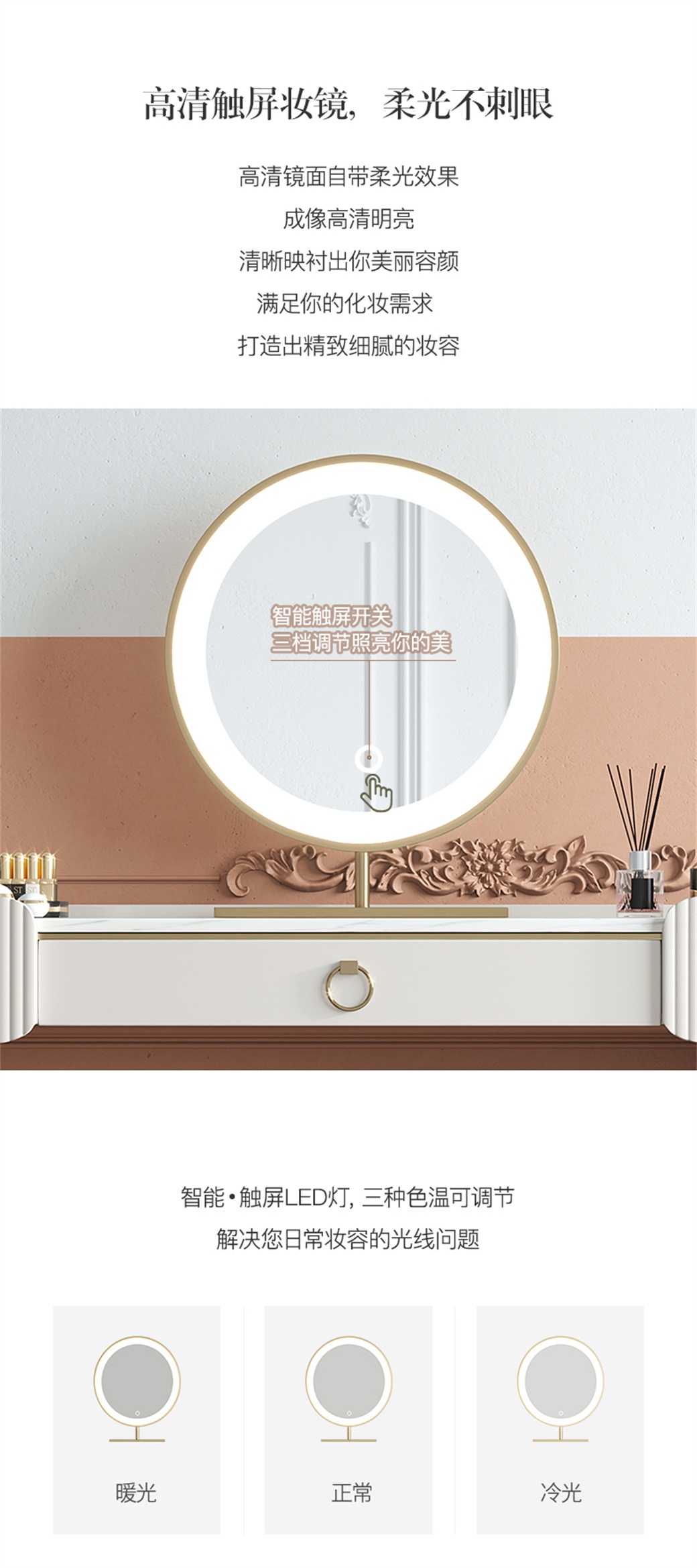 妆台:800*450*770边柜:500*450*600镜子:直径450