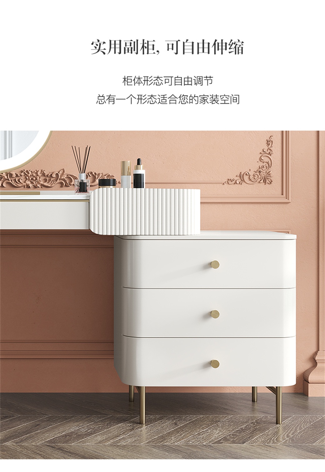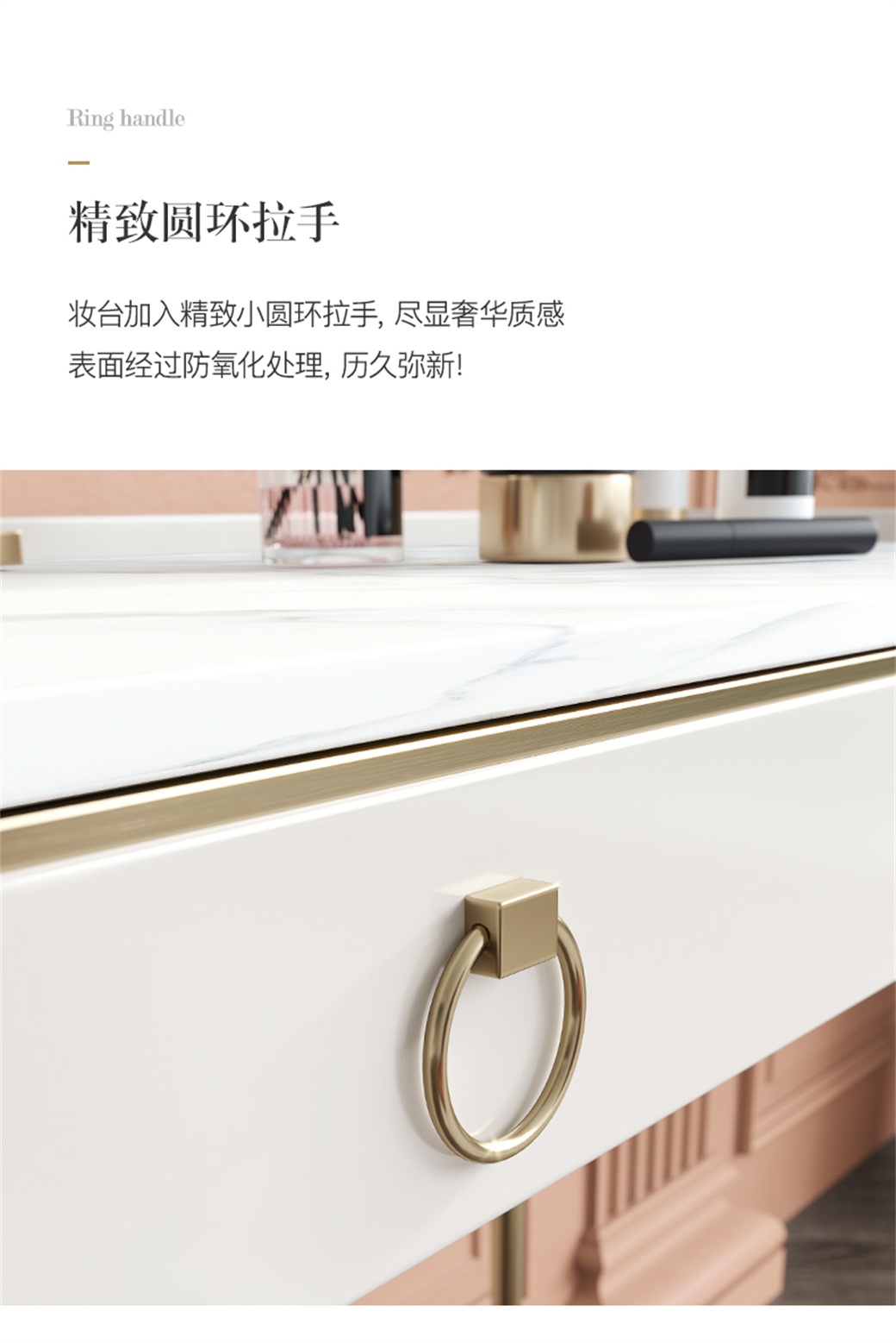 【简奢家】轻奢 岩板+坚条浮雕工艺+水性烤漆板+不锈钢镀金脚 妆台+柜子+妆凳+镜子