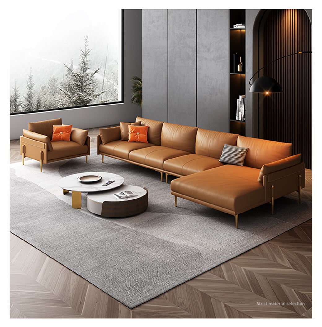 【简奢家】轻奢 纳帕头层真皮+高密度海棉+白鹅羽绒靠包+全实木内架+碳素钢脚 单+双+贵妃
