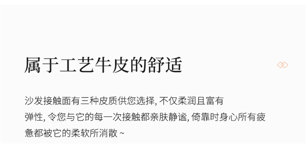 • 纳帕头层真皮+高密度海棉+白鹅羽绒靠包+全实木内架+碳素钢脚