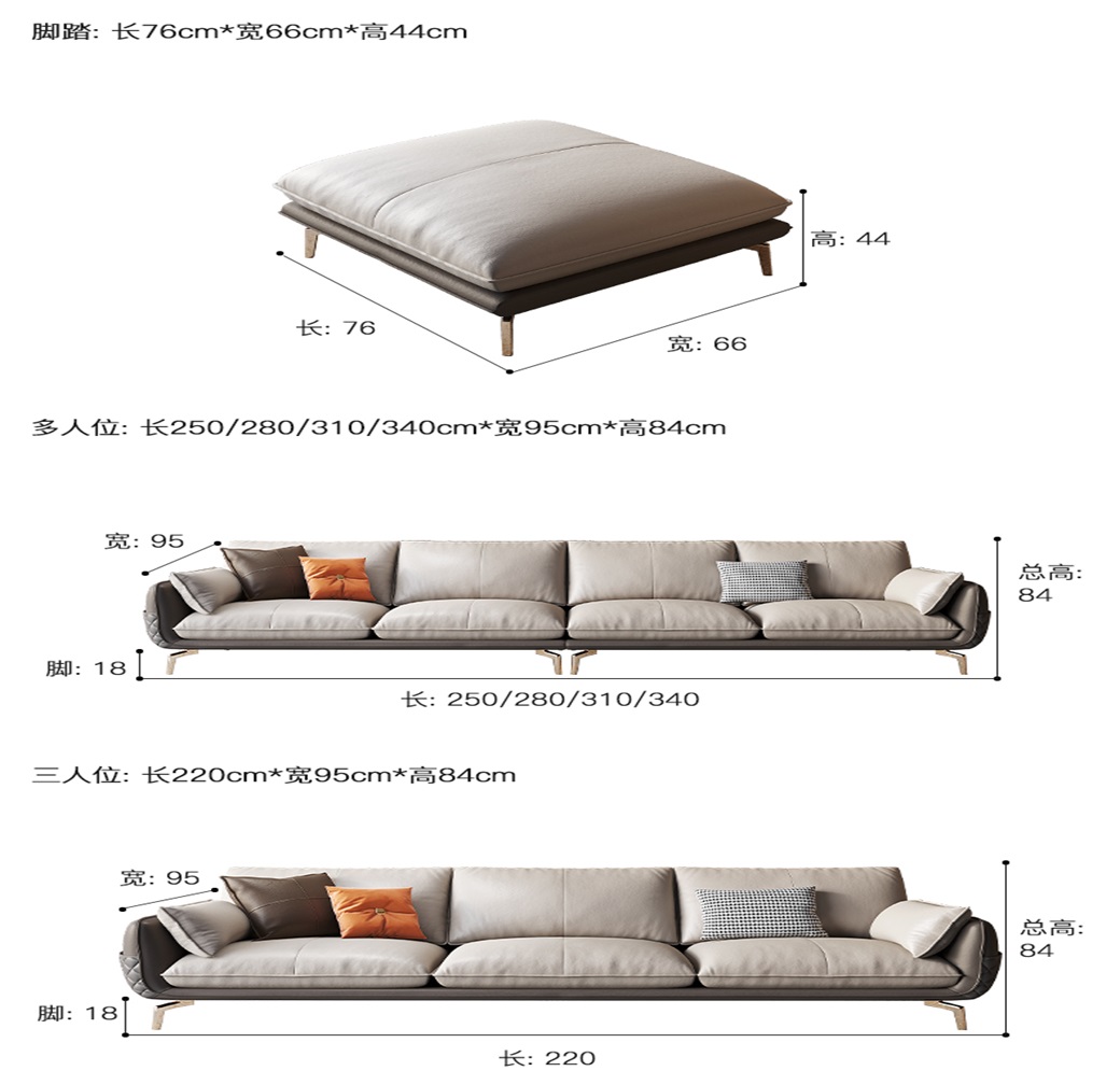 • 纳帕头层真皮+高密度海棉+白鹅羽绒靠包+全实木内架+碳素钢脚