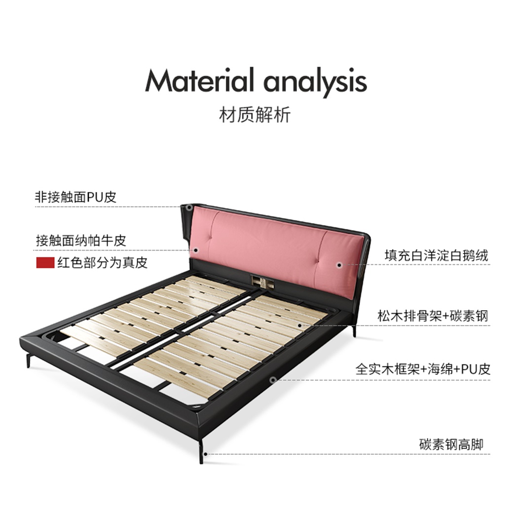【简奢家】极简 接触面仿真皮+高密海棉+鹅绒靠包+全实木内架+碳素钢脚 1.8米床