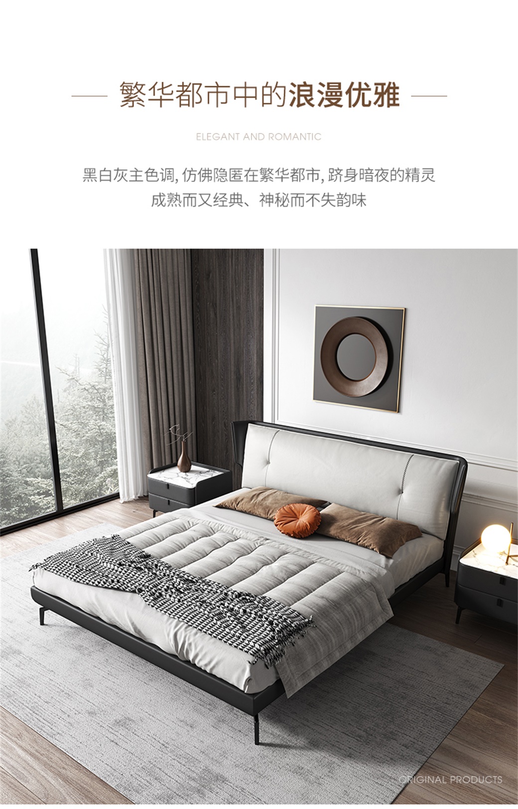 【简奢家】极简 接触面仿真皮+高密海棉+鹅绒靠包+全实木内架+碳素钢脚 1.5米床