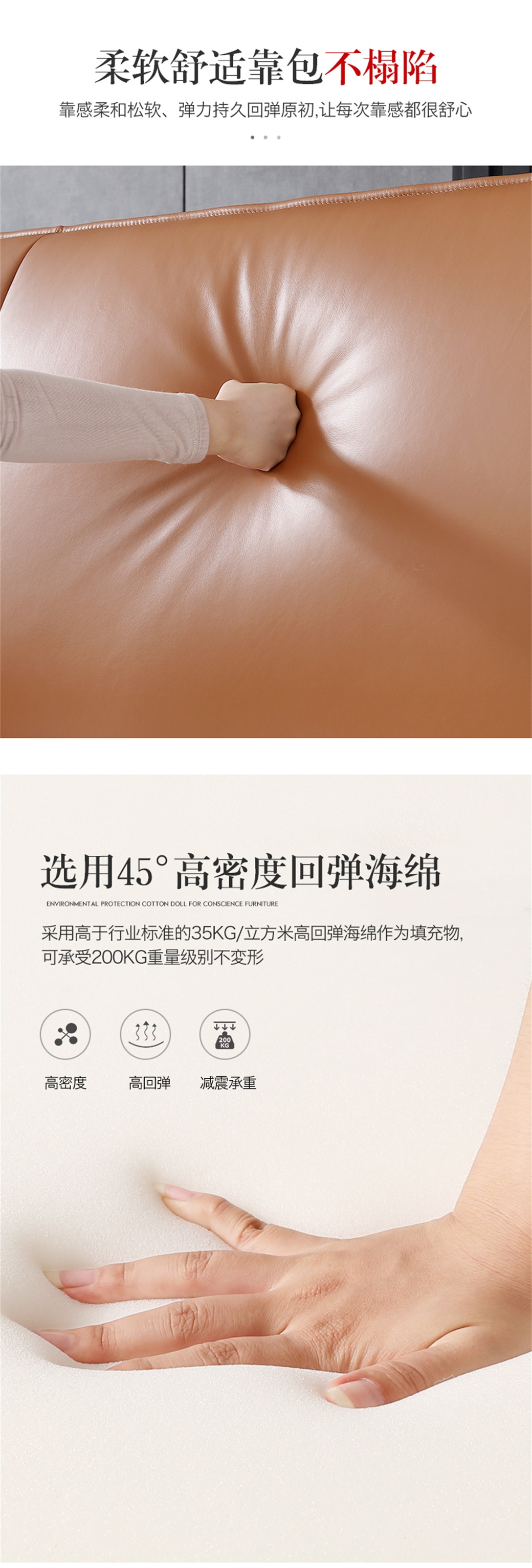 材质:接触面仿真皮+高密海棉+白鹅绒+全实木内架+碳素钢脚