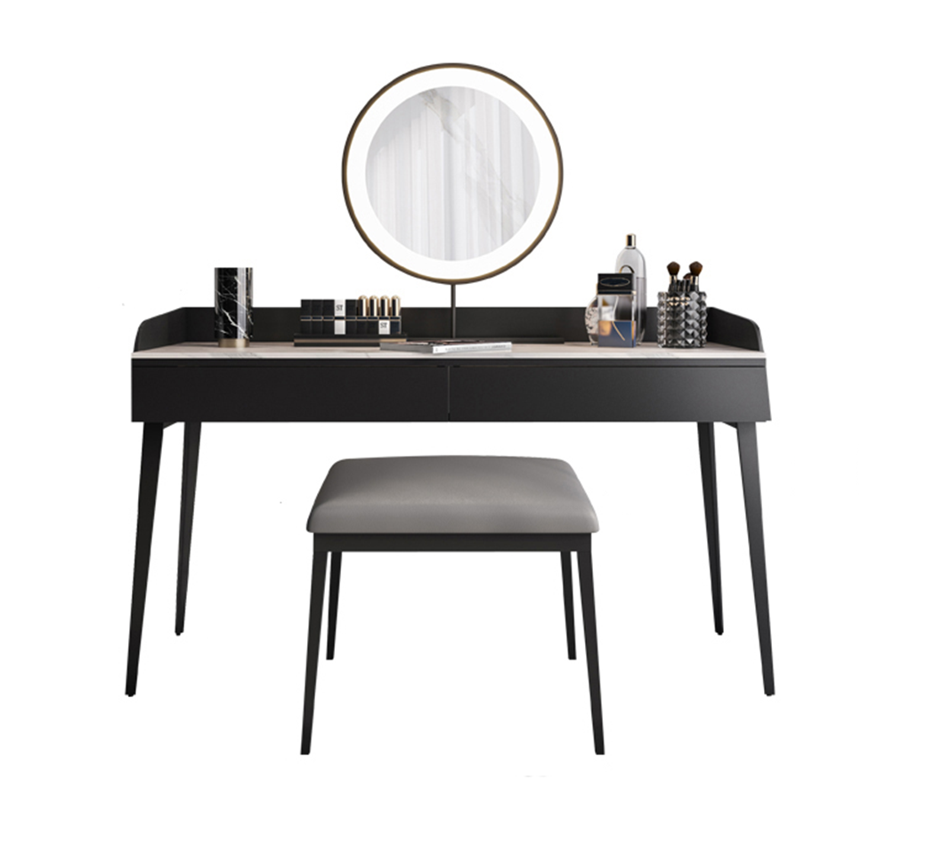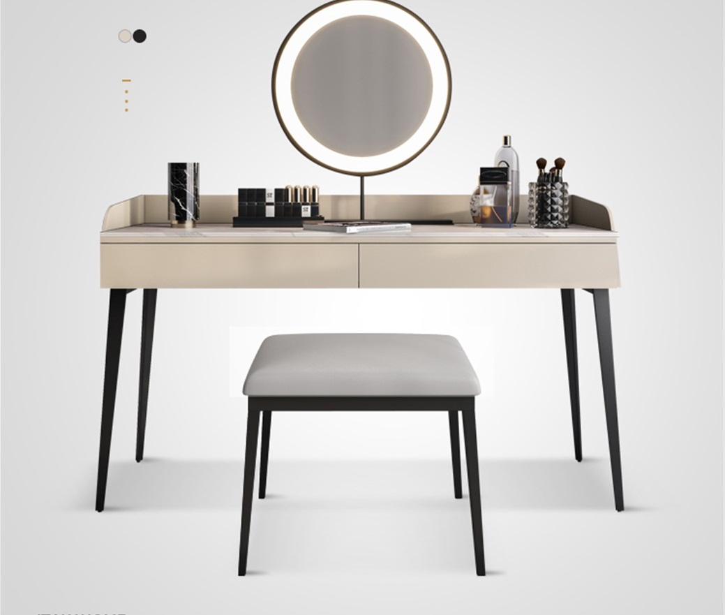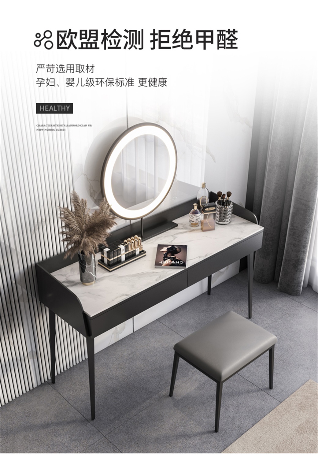 【简奢家】极简 岩板+E1级密度板贴水曲柳木皮+实木抽屉+碳素钢脚 妆镜+妆台+妆凳