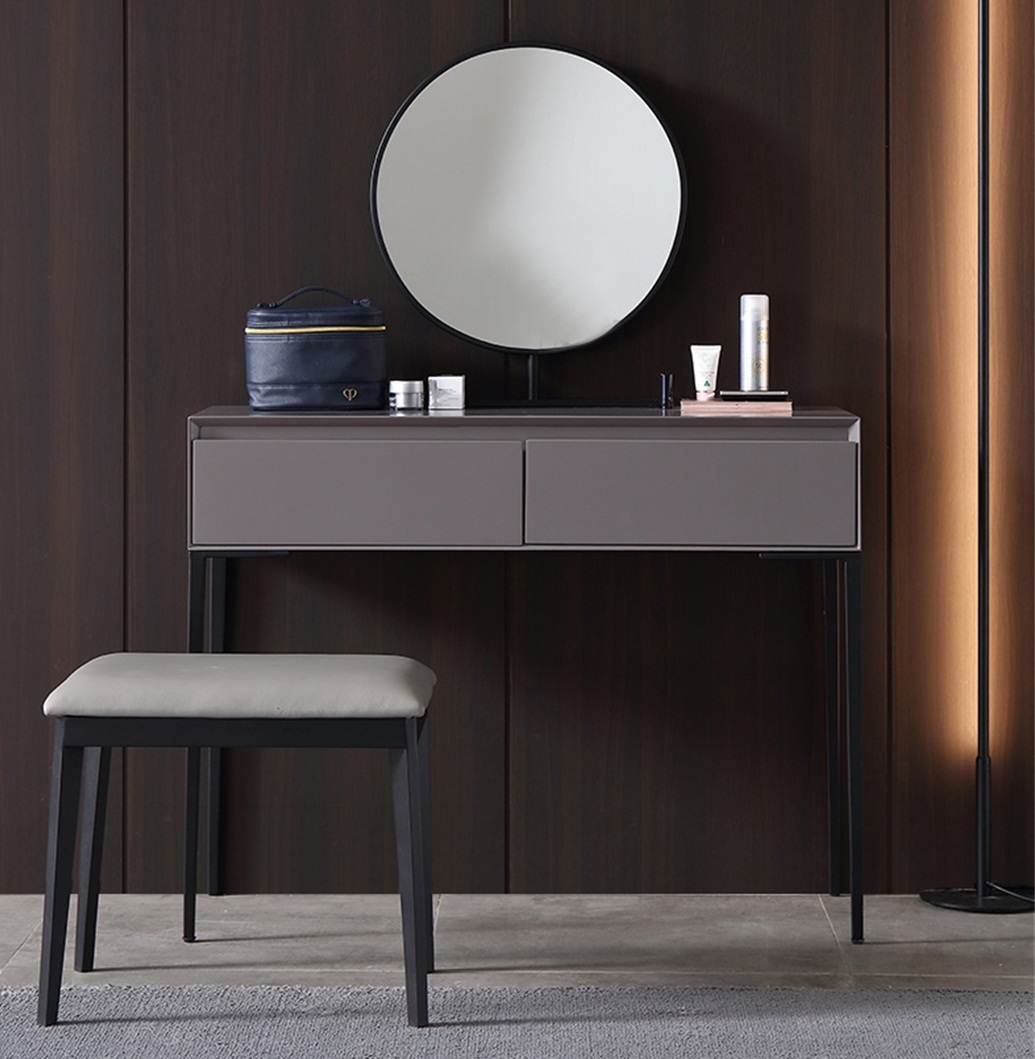 【简奢家】极简 E1级密度板+实木抽屉+碳素钢底架 妆镜+妆台+妆凳