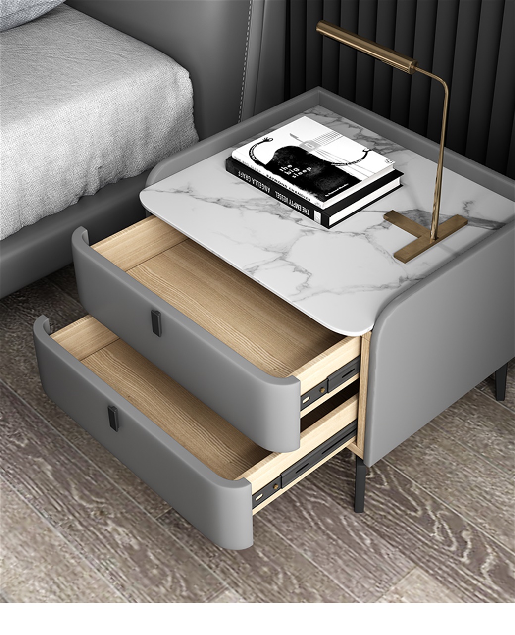 【简奢家】极简 岩板+实木内架+扪优质皮+碳素钢脚 床头柜