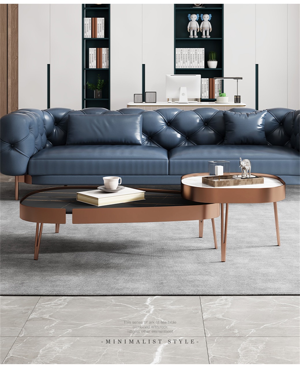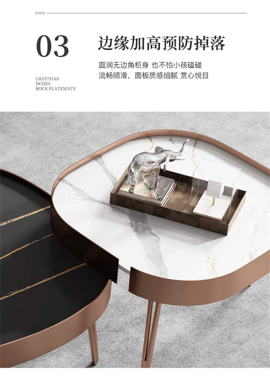 【简奢家】极简 岩板+不锈钢古铜色 茶几组合