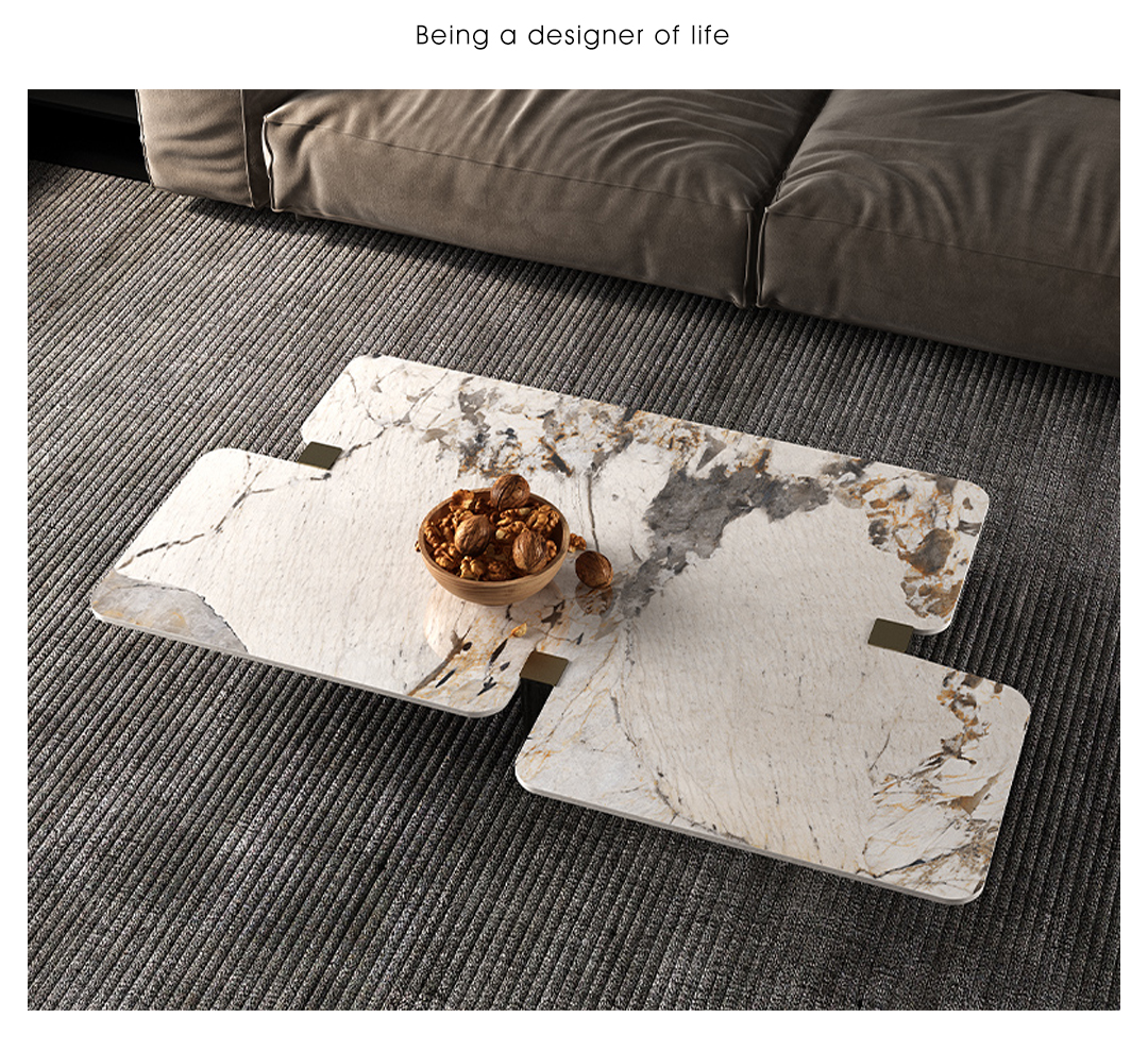 【简奢家】极简 亮光岩板+不锈钢黑钛 茶几