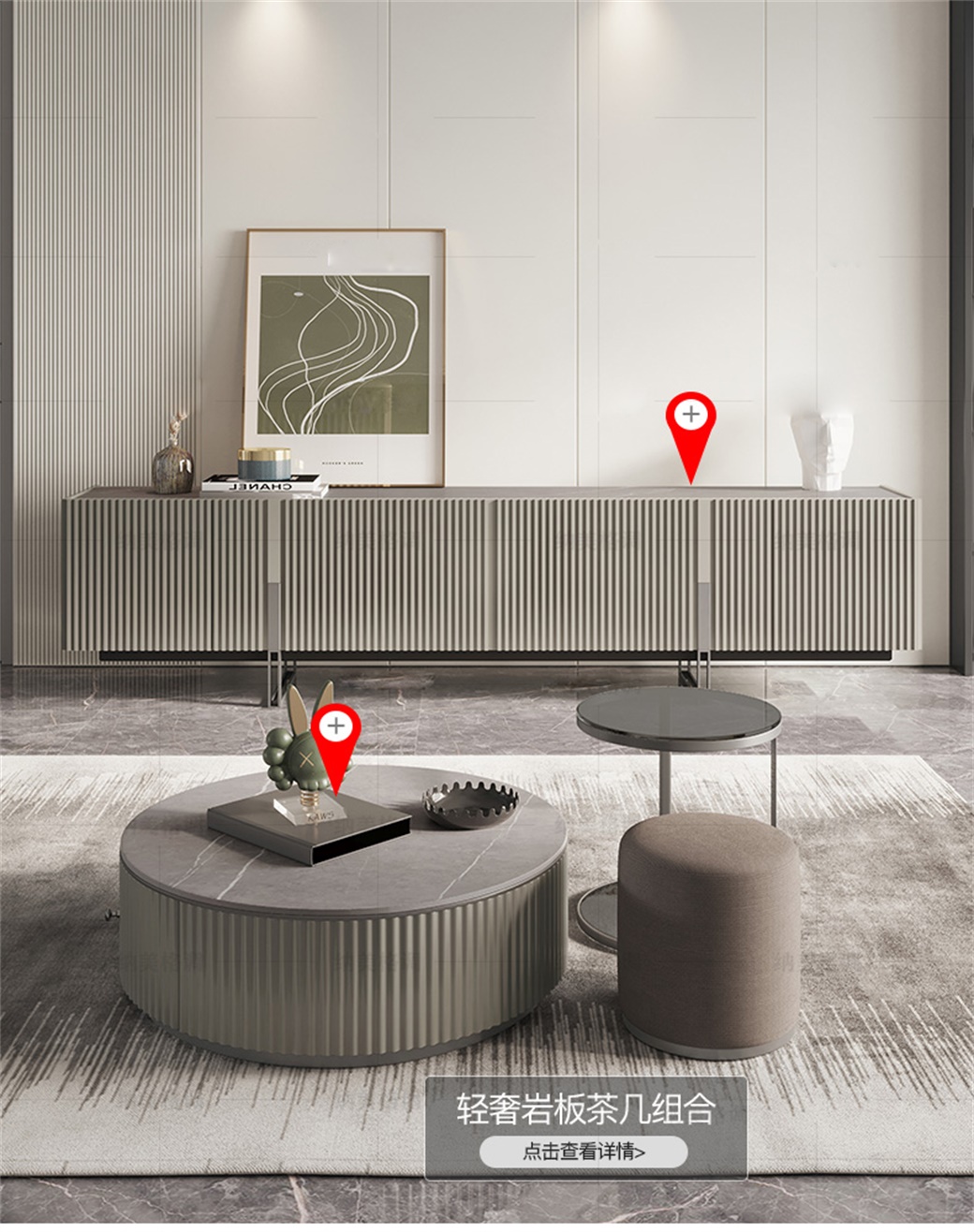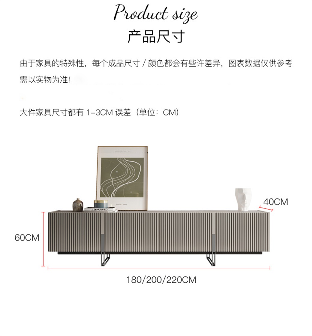 【简奢家】极简 岩板+浮雕工艺+钢琴烤漆高级灰+不锈钢灰钢 电视柜