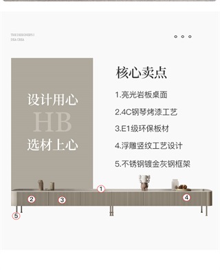 【简奢家】 岩板+钢琴烤漆+E1级环保板材+不锈钢灰钢 电视柜