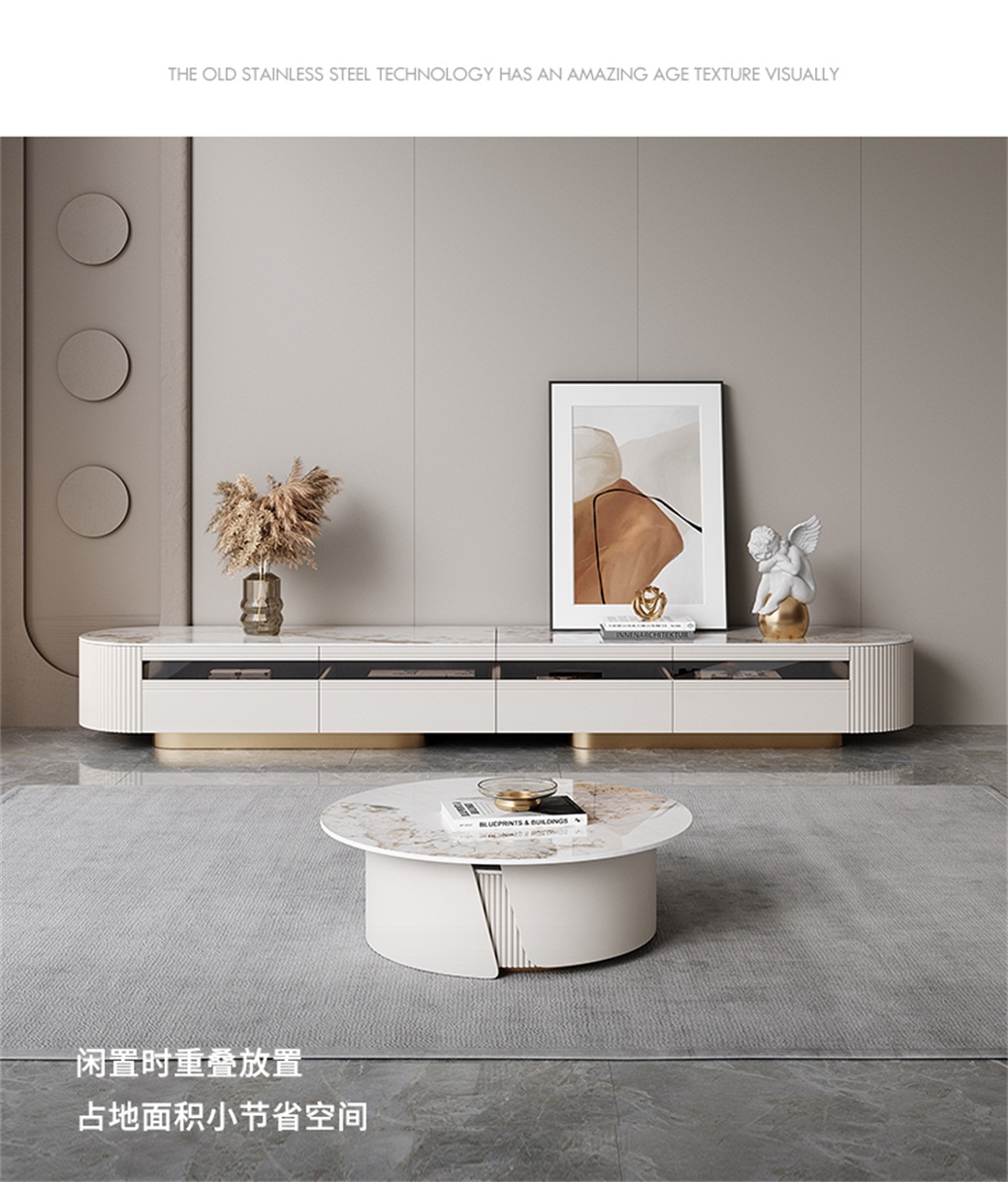 【简奢家】 潘多拉亮光岩板+钢化玻璃+E1级板材+钢琴烤漆+不锈钢镀金 电视柜