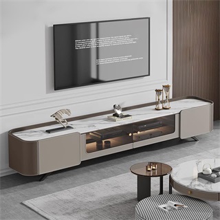 【简奢家】 岩板+烟熏木纹+LED灯+茶色玻璃+马鞍皮+哑光拉丝脚 茶几