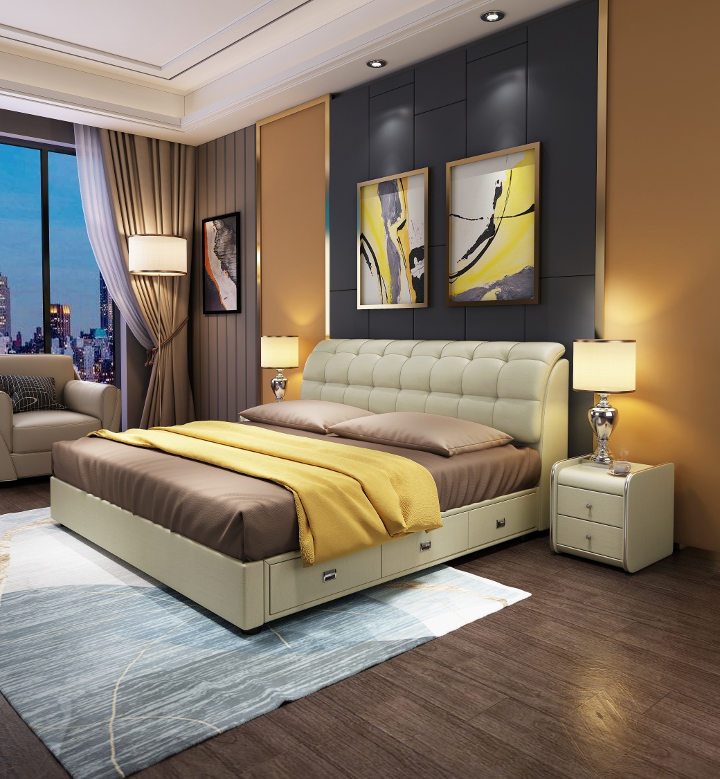 • 面料:西皮/金刚皮/科技布+靠包填充:海绵+框架:桉木+标配床板:松木排骨架